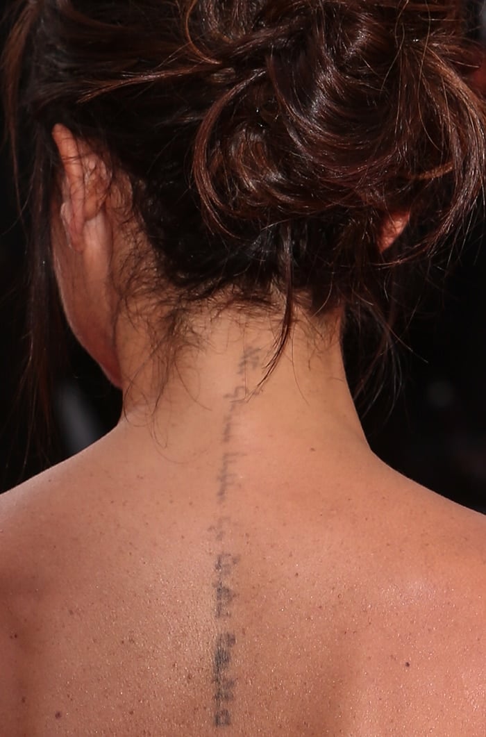 In addition to an Arabic tattoo on the right side of her back, Selena Gomez got inked on the back of her neck on September 29, 2012, by famous New York artist Bang Bang. According to the artist, “the tattoo was a tribute to a family member who she said means a lot to her.”