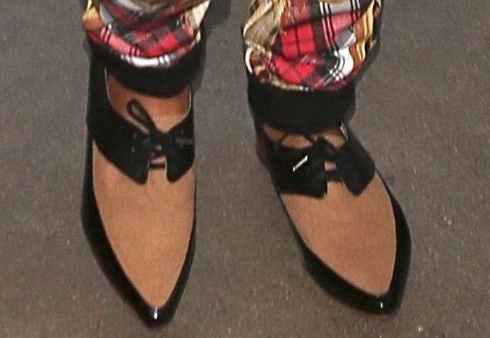 We don’t have the official details on Nicole’s plane-ride look, but it seems easy enough to copy. All you need are matching separates and a pair of pointy brogues.