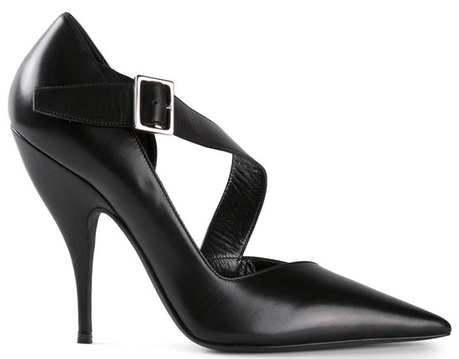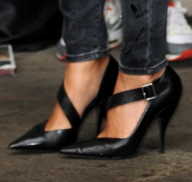 Check out her shoes closely; they stand out with diagonal straps, asymmetric vamps, a half d’Orsay silhouette, and kitten-ish heels. We found out they were from Narciso Rodriguez. Meet the “Julianna”: