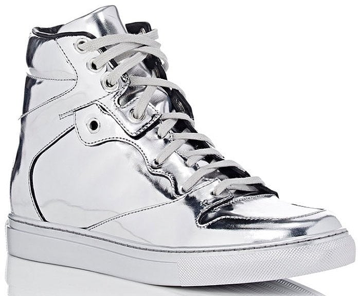 The 19-year-old posted a pic of ankle boots and high-top sneakers in the same shiny mirror leather material. A week later, the social media star posted a casual outfit of the day Instagram pic with the silver sneakers.