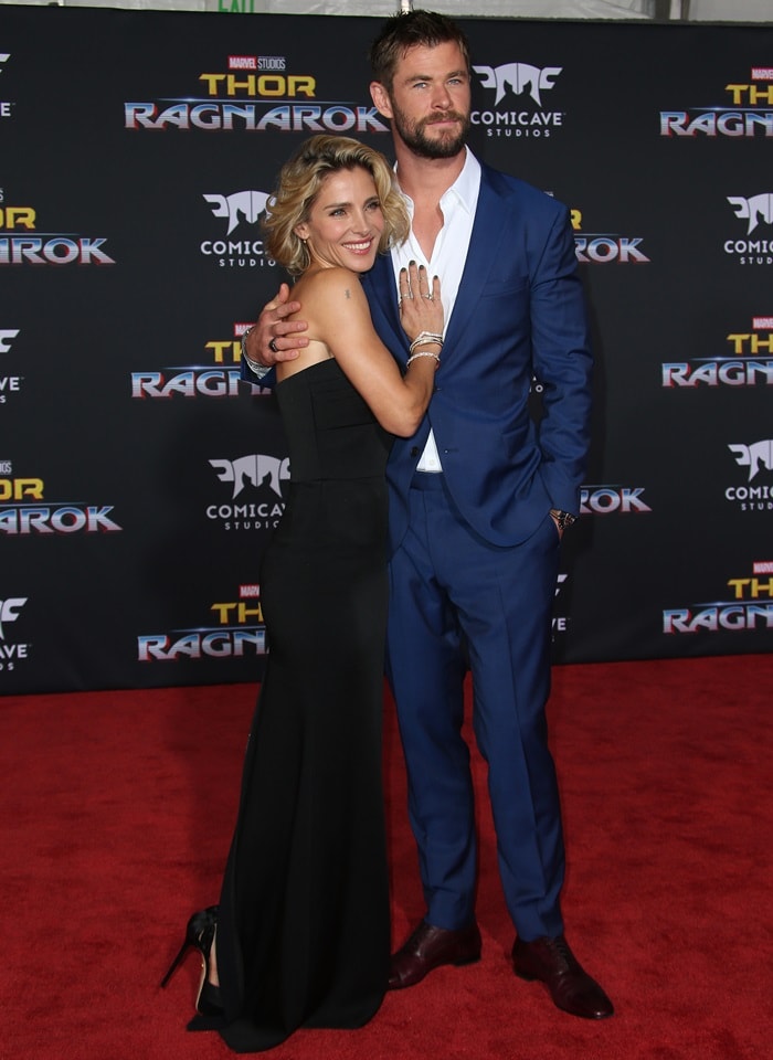 At the premiere of Thor: Ragnarok in October 2017, Elsa looked much classier in a Victoria Beckham Resort 2017 gown styled with a gold choker necklace.
