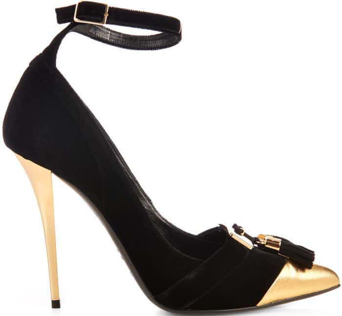 Balmain “Liliea” Metallic Leather-Trimmed Velvet Pumps, $1,365