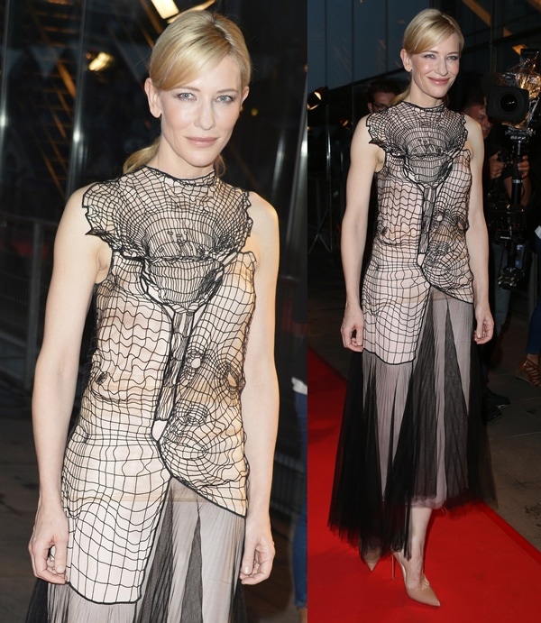 Cate, who tends to stick to more pristine red carpet looks, surprised us by wearing a somewhat haunting Christopher Kane dress. As edgy and cool as the dress is, it doesn’t seem to be a good fit for the typically ethereal actress.