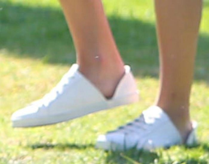 The 34-year-old actress completed her look with an interesting pair of white leather sneakers, which we have yet to identify.