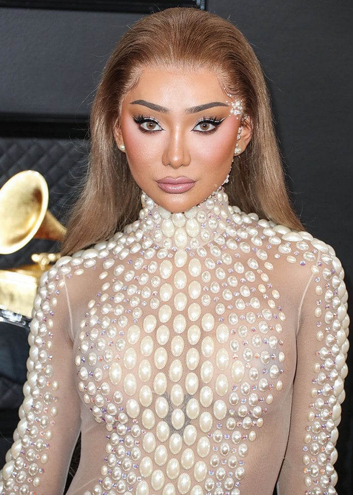 Nikita Dragun stuns at the Grammy Awards in a pearl-embellished sheer bodysuit on January 26, 2020 (Credit: Adriana M. Barraza / Avalon / Instar / WENN)