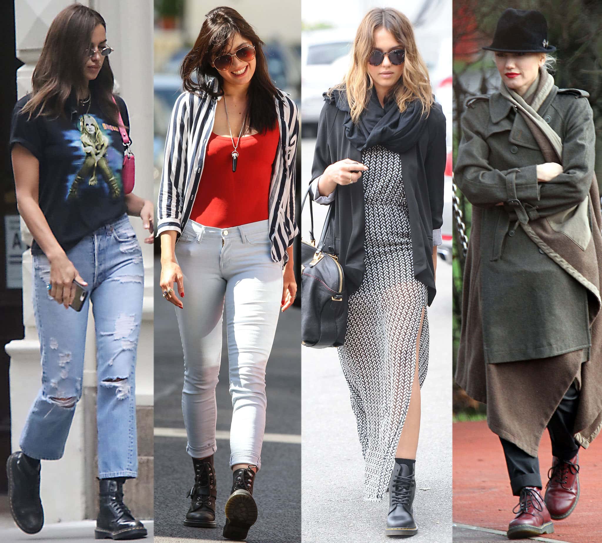 Irina Shayk, Daisy Lowe, Jessica Alba, and Gwen Stefani showcase the versatility of Dr. Martens—mostly classic black 1460s with Gwen’s burgundy pair—styled with ripped denim, skinnies, a printed maxi, and layered outerwearIrina Shayk, Daisy Lowe, Jessica Alba, and Gwen Stefani showcase the versatility of Dr. Martens—mostly classic black 1460s with Gwen’s burgundy pair—styled with ripped denim, skinnies, a printed maxi, and layered outerwear (Credit: Mega / WENN)