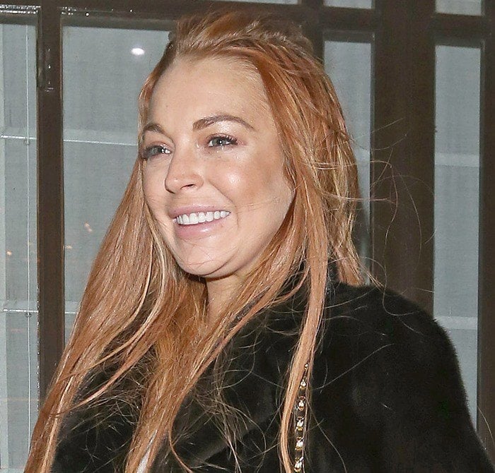 LiLo looked stunning and elegant. She wore another furry coat, this time in black, and a pretty glittery white A-line dress underneath it. The only accessory was her Chanel quilted purse.
