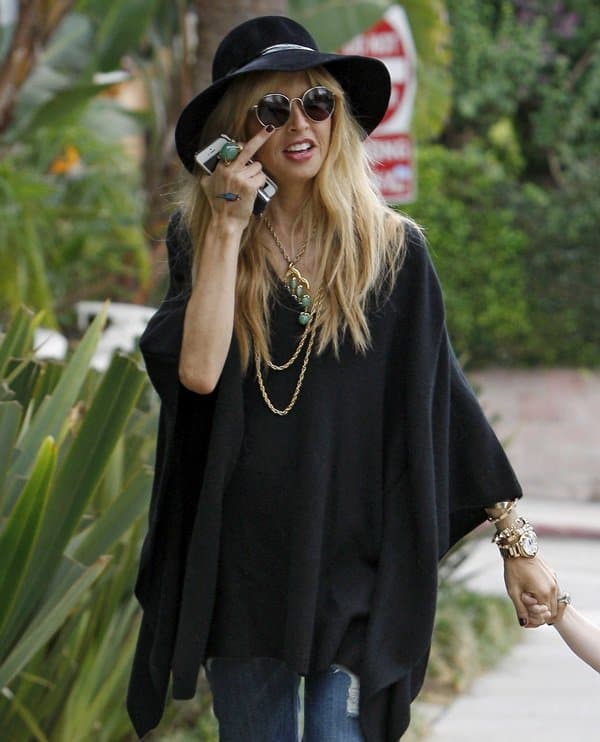 Rachel donned a chic bohemian-inspired ensemble with a black caftan top and shredded super-flared jeans. Meanwhile, little Skyler wore a short gray onesie that looked adorably dapper on him—if there’s such a thing.