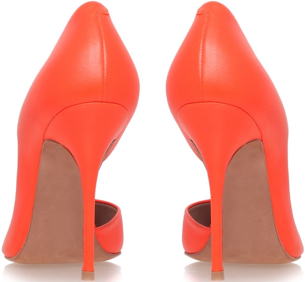 The then-37-year-old Parks and Recreation star wore a pair of gorgeous orange leather “Anja” court shoes from Kurt Geiger. These shoes feature pointy toes, cigarette heels, and a sleek d’Orsay silhouette.