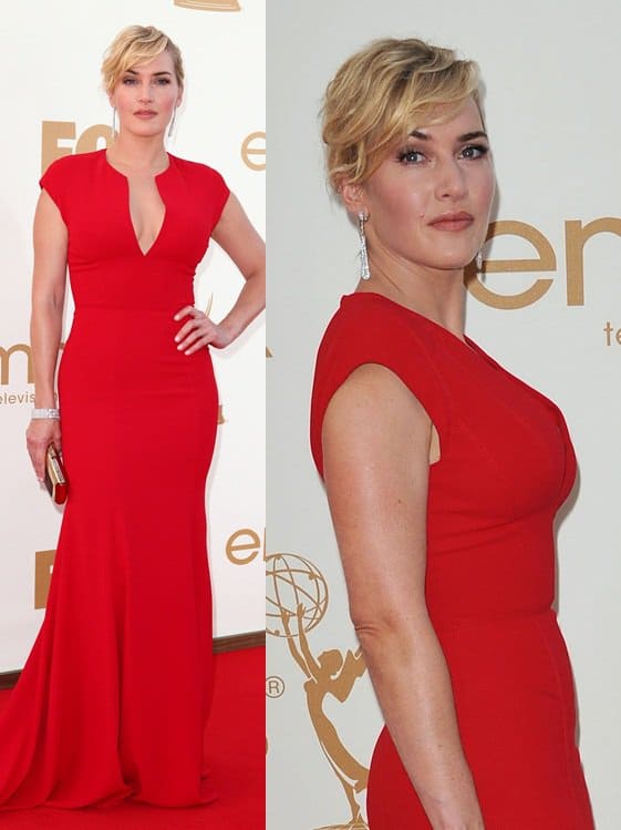 There was Kate Winslet, who arrived on the red carpet in a classic and elegantly cut gown from Elie Saab – one with a touch of risque to it via a deep plunging neckline that showcased her assets: