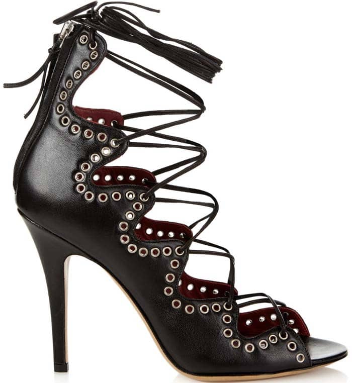 You can order Isabel Marant’s “Lelie’ lace-up heels in tan and black at Nordstrom and Farfetch.