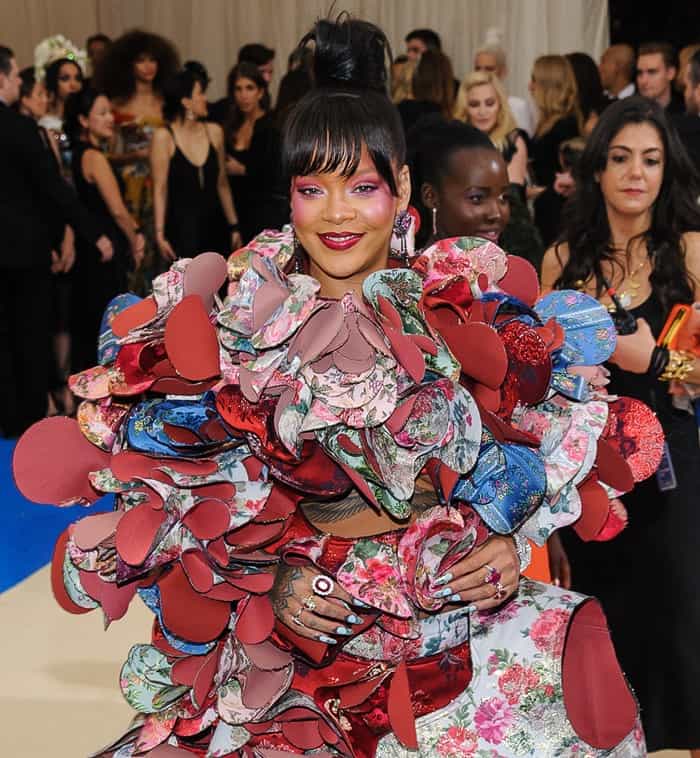 Rihanna made a stunning appearance at the 2017 Met Gala in a Comme des Garçons Fall 2016 piece (Credit: WENN)
