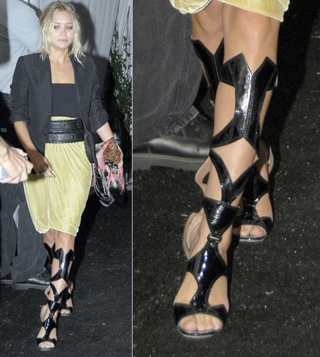 Ashley Olsen turns heads in Azzedine Alaïa knee-high gladiator boots at Hampton Social at Ross in NYC, August 11, 2007 (Credit: WENN / Anthony Dixon / Crollalanza / Beiny / Julie Ramos)