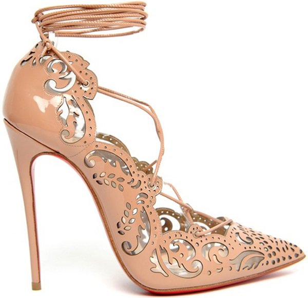 These cutout lace-up pumps are also available in nude and black versions, as shown below.