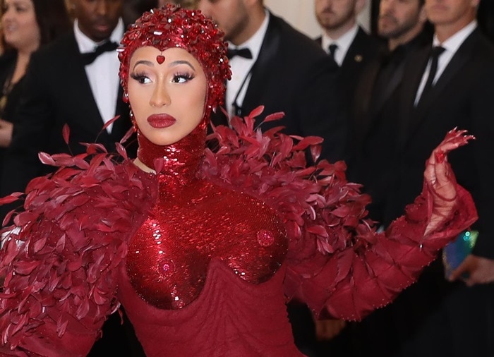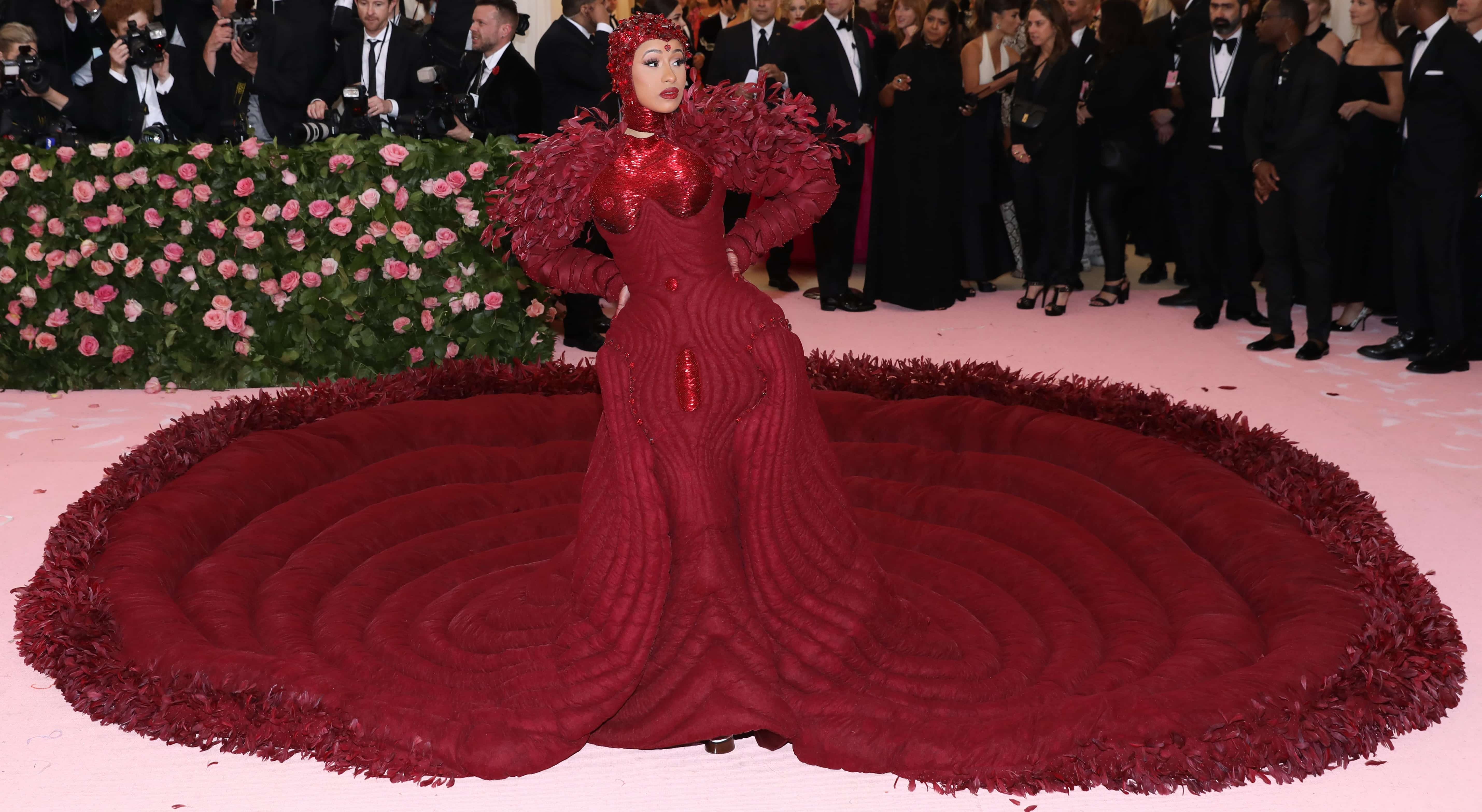 Cardi B wore an oxblood gown to the 2019 Met Gala held at the Metropolitan Museum of Art in New York City on May 6, 2019