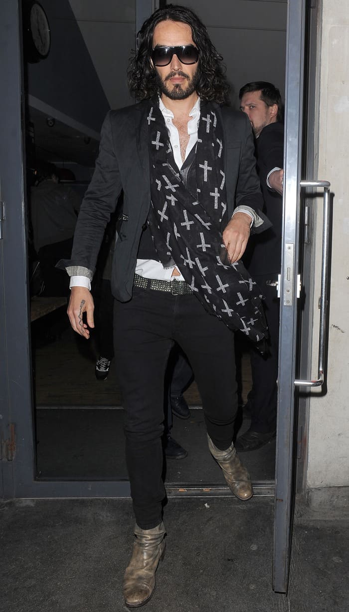 We have written about the scarf-wearing Russell Brand once before. And obviously, we’re doing it again today.