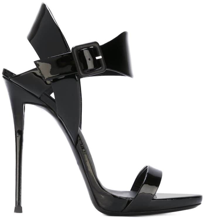 The stilettos feature 120 mm heels and large ankle straps with large buckles.