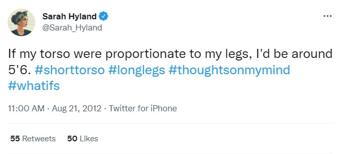On Twitter, Sarah Hyland playfully remarked that her proportions are unique, claiming that if her torso matched the length of her legs, she’d be 5’6″ instead of 5’1″.