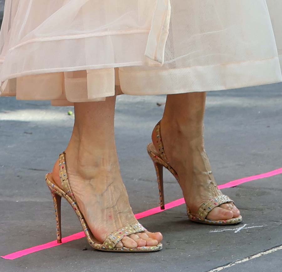 Exiting Carrie Bradshaw’s posh New York City apartment, SJP donned another stunning pair of heels from Aquazzura.