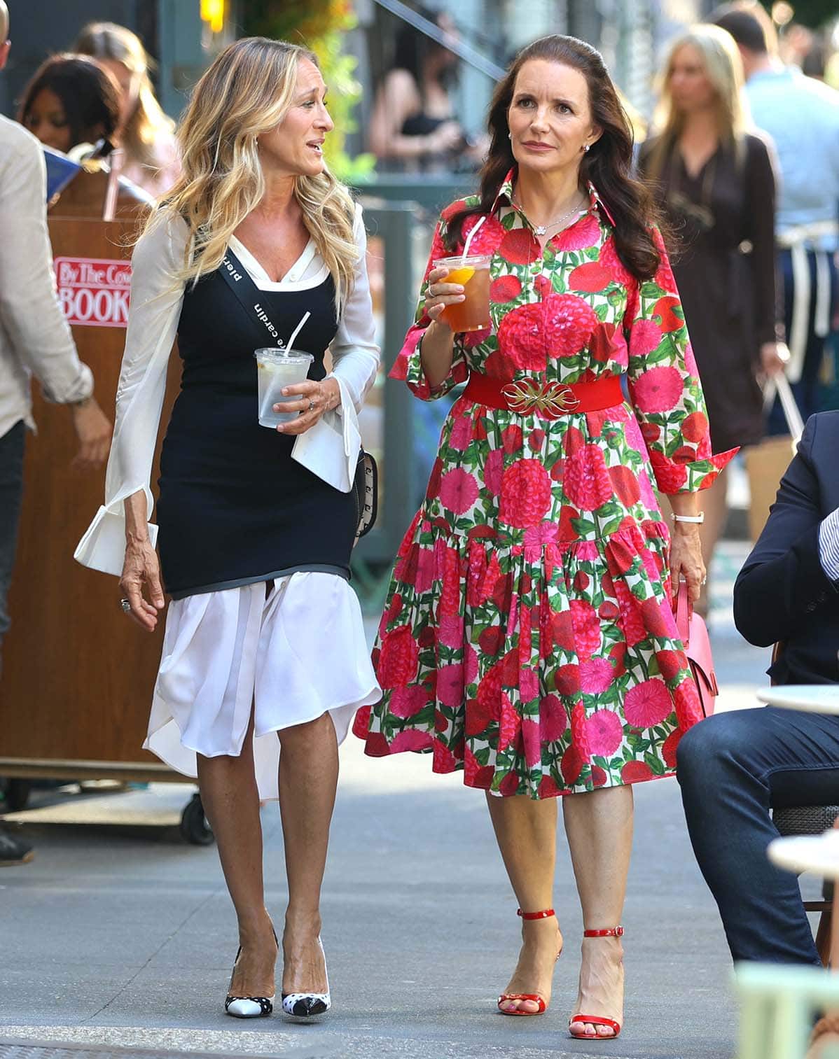 While filming a scene with her And Just Like That co-star Kristin Davis, SJP was spotted sporting a black-and-white outfit.
