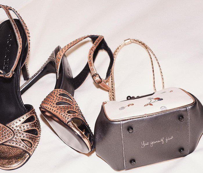 We especially love her Coach kiss-lock purse, which was custom-made for Selena. The tiny cherry-print purse boasts a secret message of empowerment on its bottom.