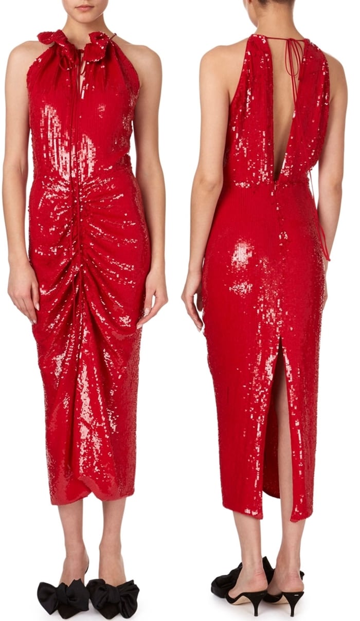 Hilo Ruched Sequin Halter Midi Dress, $2,685 at Neiman Marcus