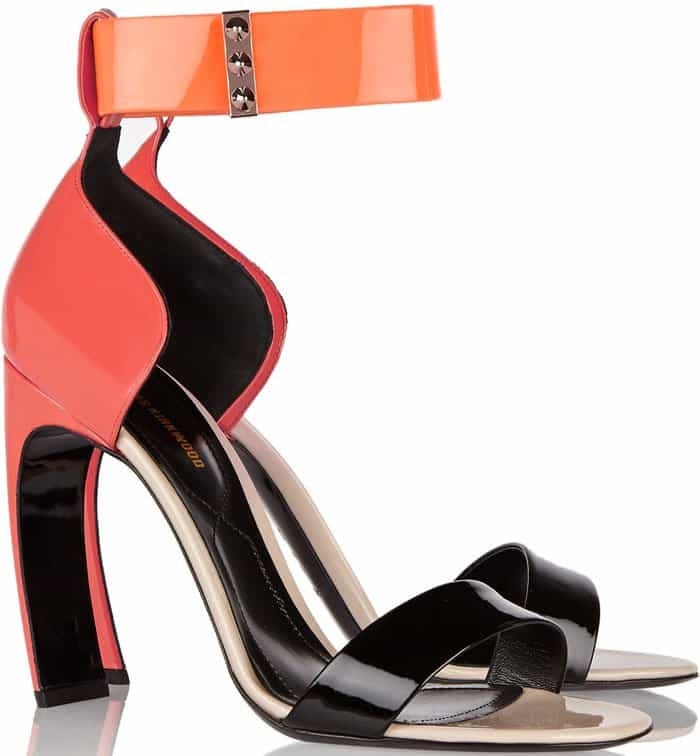 Shailene’s particular pair of Nicholas Kirkwood “Maeva” sandals is no longer available, but you can order the identical shoe in a different color combination at Farfetch.