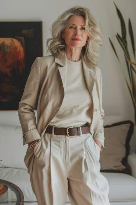 - 🖤 This androgynous outfit story shows Sharon Stone taking a sharper street-style turn in Zara leather sneakers, tailored separates, and a satin scarf.