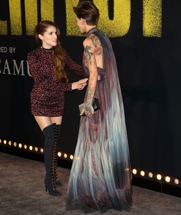 Standing at 5 feet 6½ inches (168.9 cm), Ruby Rose towered over her co-star Anna Kendrick, who measures 5 feet 1 inch (154.9 cm), as the pair reunited on the red carpet for the premiere of the latest Pitch Perfect installment.