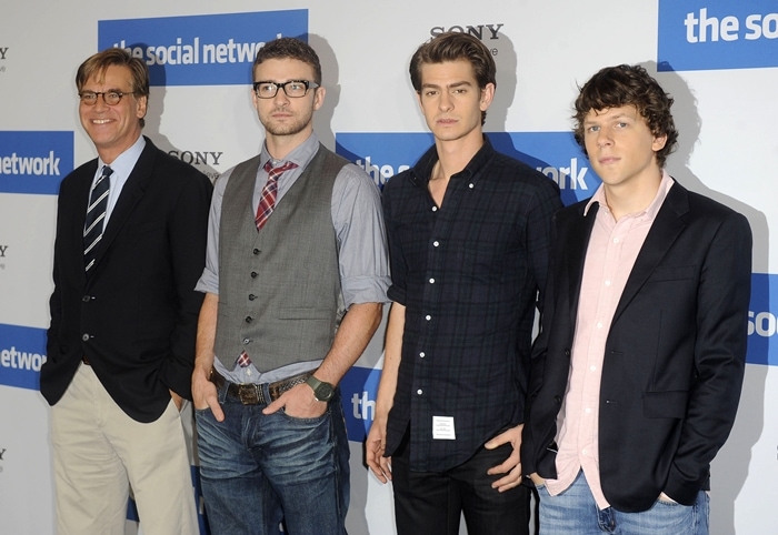 His co-star Justin Timberlake (Sean Parker) was 28, Andrew Garfield (Eduardo Saverin) was 26, and screenwriter Aaron Sorkin was 48 when the movie was filmed.
