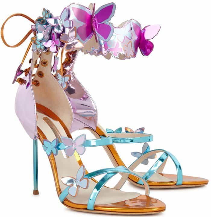 We recently featured 11 new shoes from the British shoe designer, but Sophia Webster has really outdone herself with these strappy metallic leather sandals with butterfly appliques.