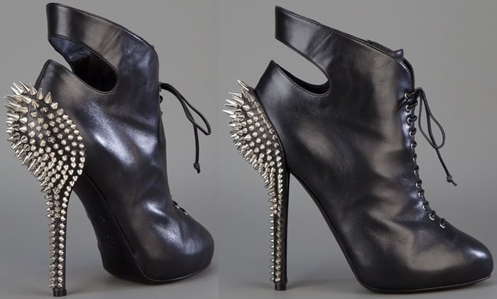 We love the cutout detail on the heels of these boots as well as the lace-up design. The spikes are very trendy and would add a hefty dose of edge to basics like black trousers or jeans. It’s obvious that we’re fans.