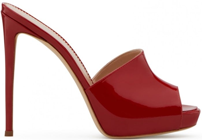 She styled her way too tight dress with black patent leather stiletto Nettie mules from Giuseppe Zanotti that you can buy from $398 at Farfetch, GZ Design, and Zappos.