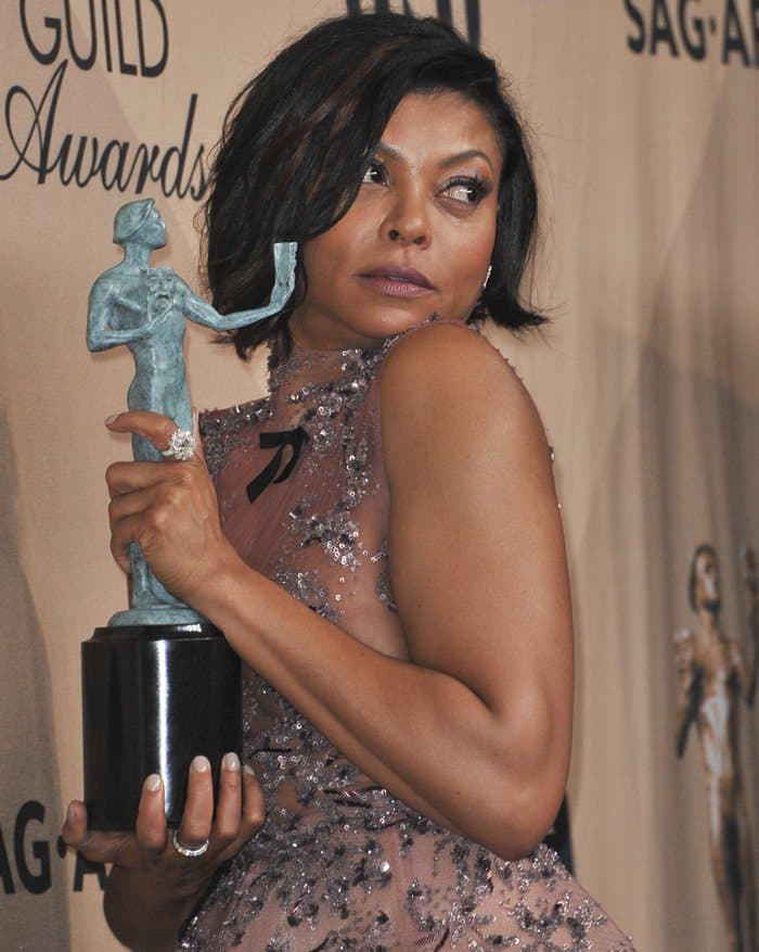Taraji and the other stars of ‘Hidden Figures’, including Janelle Monáe, won the night’s top prize for Outstanding Performance by a Cast in a Motion Picture.