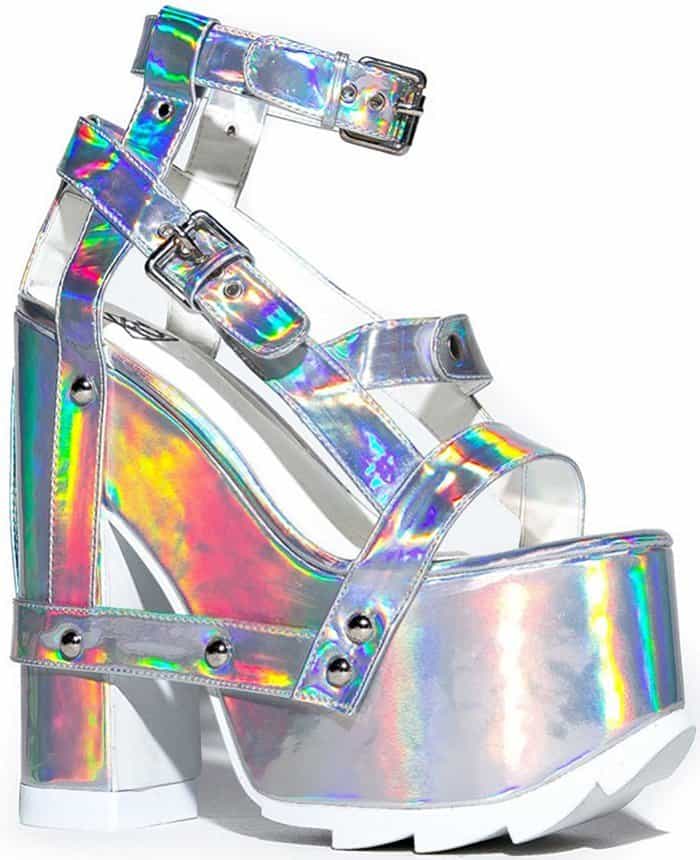 She sported a stunning ‘Gold Digger’ mini dress by Dyspnea, feline-shaped sunglasses from Esqape, and 5-inch psychedelic platform heels from Y.R.U., boosting her petite stature to an impressive 5’7″ (170.2 cm).