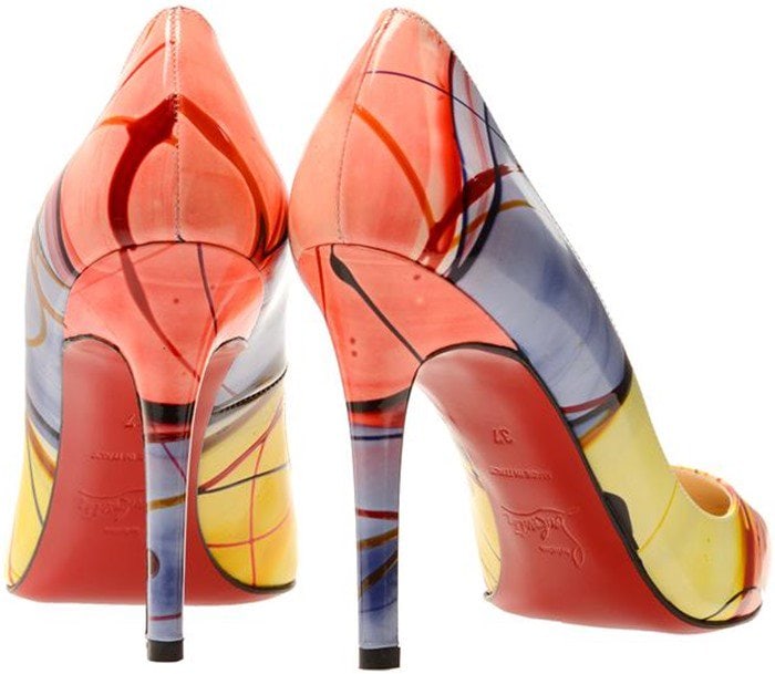 These iconic heels stand out from the traditional solid-color versions with their vibrant, multicolored splatter design. While this exact style is no longer available, newer Christian Louboutin designs can still be found at retailers like Nordstrom and Mytheresa.