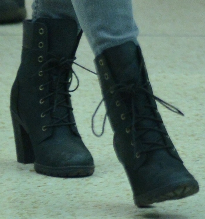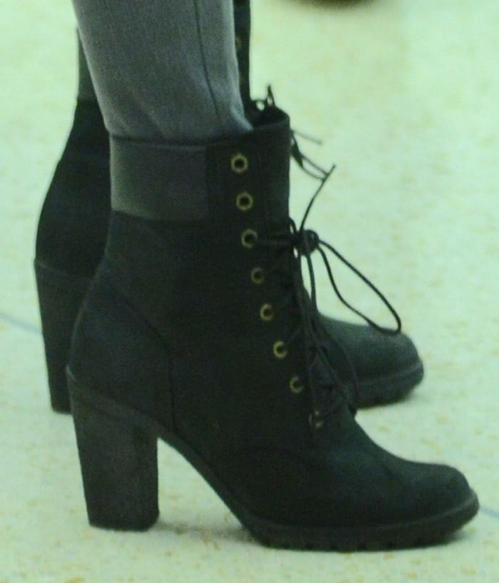 For a scene shot in New York’s police headquarters, the 29-year-old actress sported gray skinny jeans, a checkered blue flannel, and Timberland Earthkeepers “Glancy” boots. To add to her character, she also donned a baseball cap and ID lanyard.