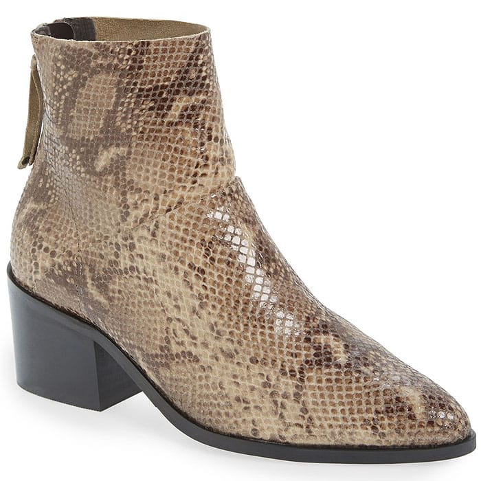 As for the snake ankle boots, we’re 100 percent sure they’re not made of exotic snakeskin and are just embossed.