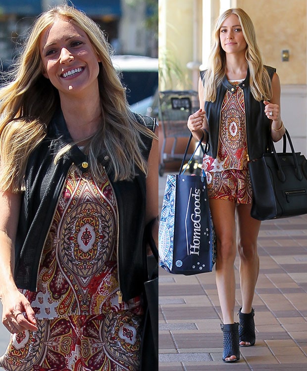 Kristin Cavallari flaunts her legs in a tribal-patterned sleeveless top and matching shorts