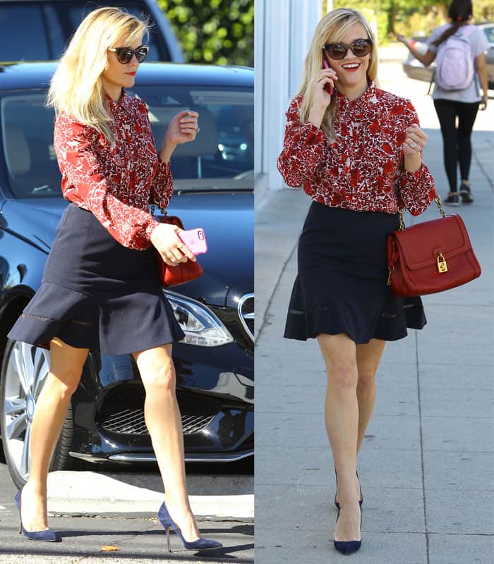 When in doubt, go for a button-down shirt like Reese’s. It goes with practically everything. The added collar gives the outfit a sleek vibe.