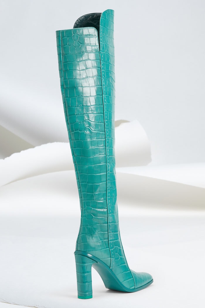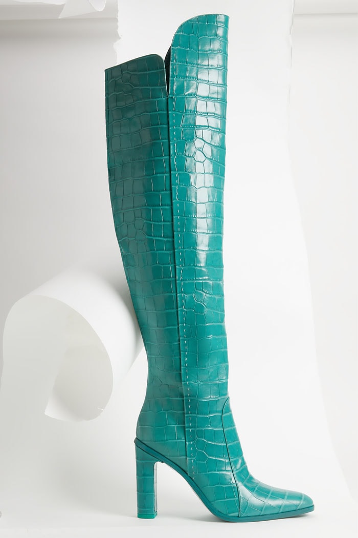 Max Mara Beboot Crocodile-Print Leather Thigh-High Boots, $1,365