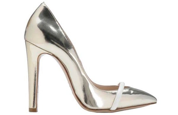 Jessica stuck to the metallic theme with silver sandals by Jimmy Choo. Strappy is the only word to describe these shoes. Towering stiletto heels and mirrored platforms can also be found on the “Madison” sandals.