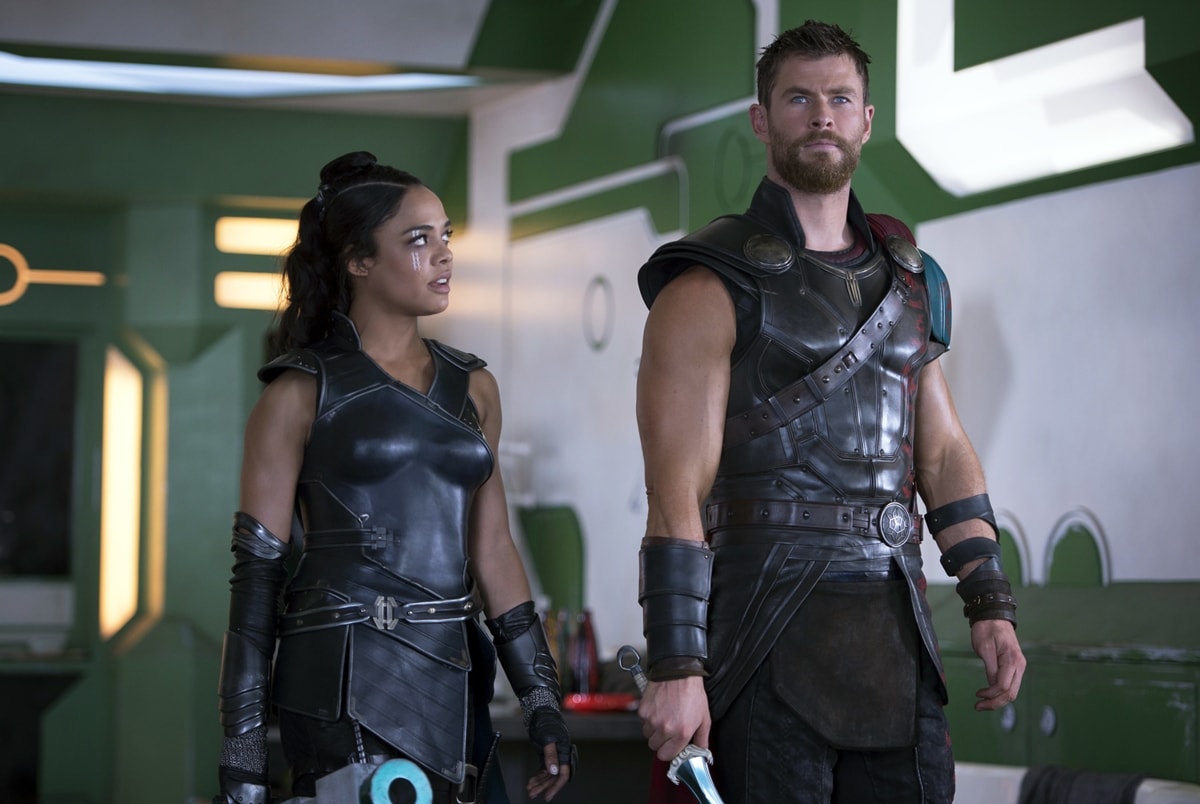 Chris Hemsworth as Thor and Tessa Thompson as Scrapper 142 / Valkyrie in the 2017 American superhero film Thor: Ragnarok directed by Taika Waititi (Credit: Marvel Studios / WENN)