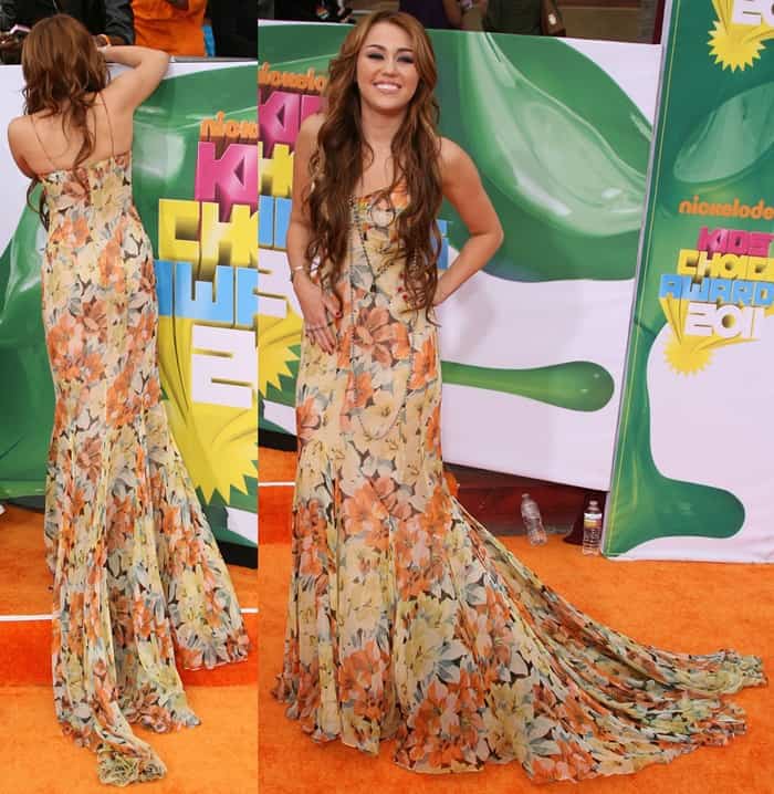 Miley Cyrus looked flawless in a Dolce & Gabbana gown at Nickelodeon’s 2011 Kids Choice Awards held at USC’s Galen Center in Los Angeles on April 2, 2011 (Credit: WENN / FayesVision / Adriana M. Barraza)