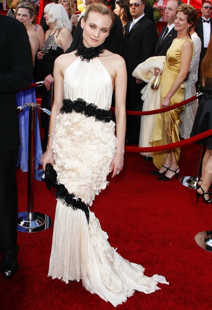 Normally, Diane Kruger would be able to pull off a quirky dress with a ruffle collar like this one from Chanel. But coupled with that chaotic skirt and that unnecessary black band around the knees, everything just ended up looking like one hot mess.