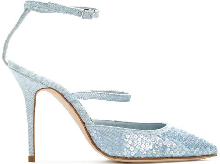 Shop the Rihanna x Manolo Blahnik “Sea Salt Sequins” pumps in two colors at Farfetch.