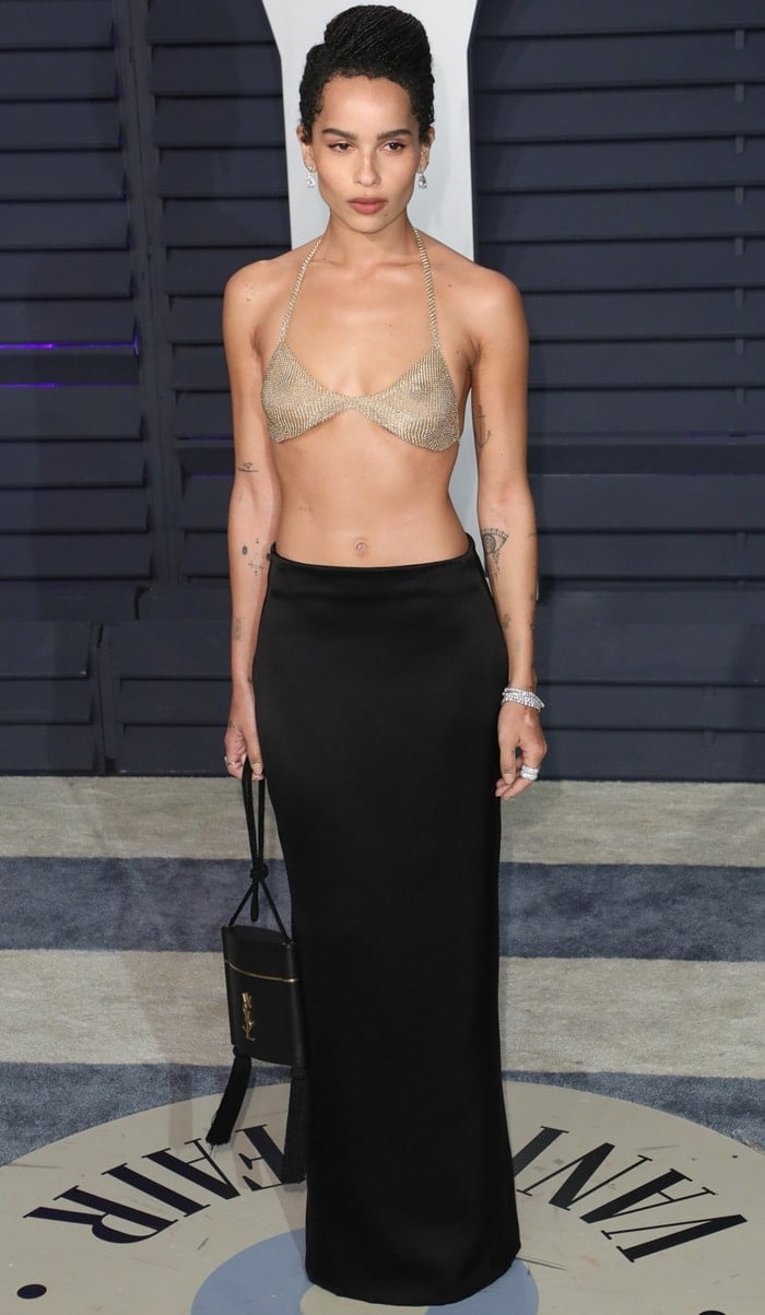 Zoë Kravitz Wears $24,000 18-Karat Gold Bra to Vanity Fair Oscar Party